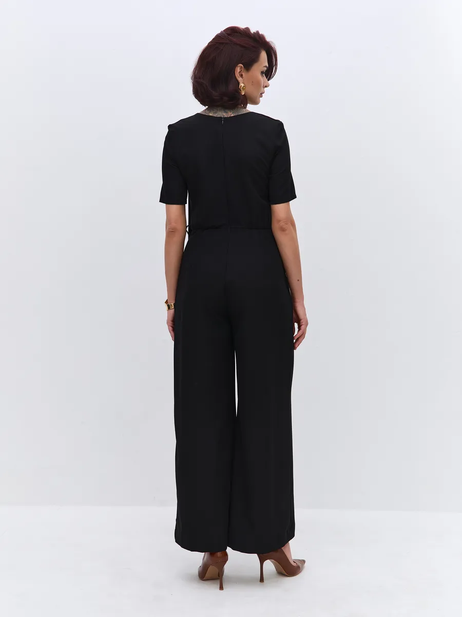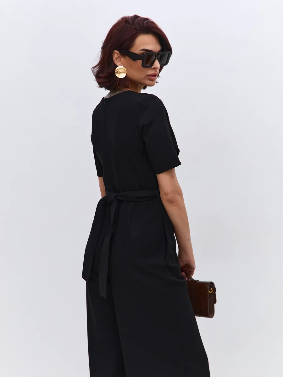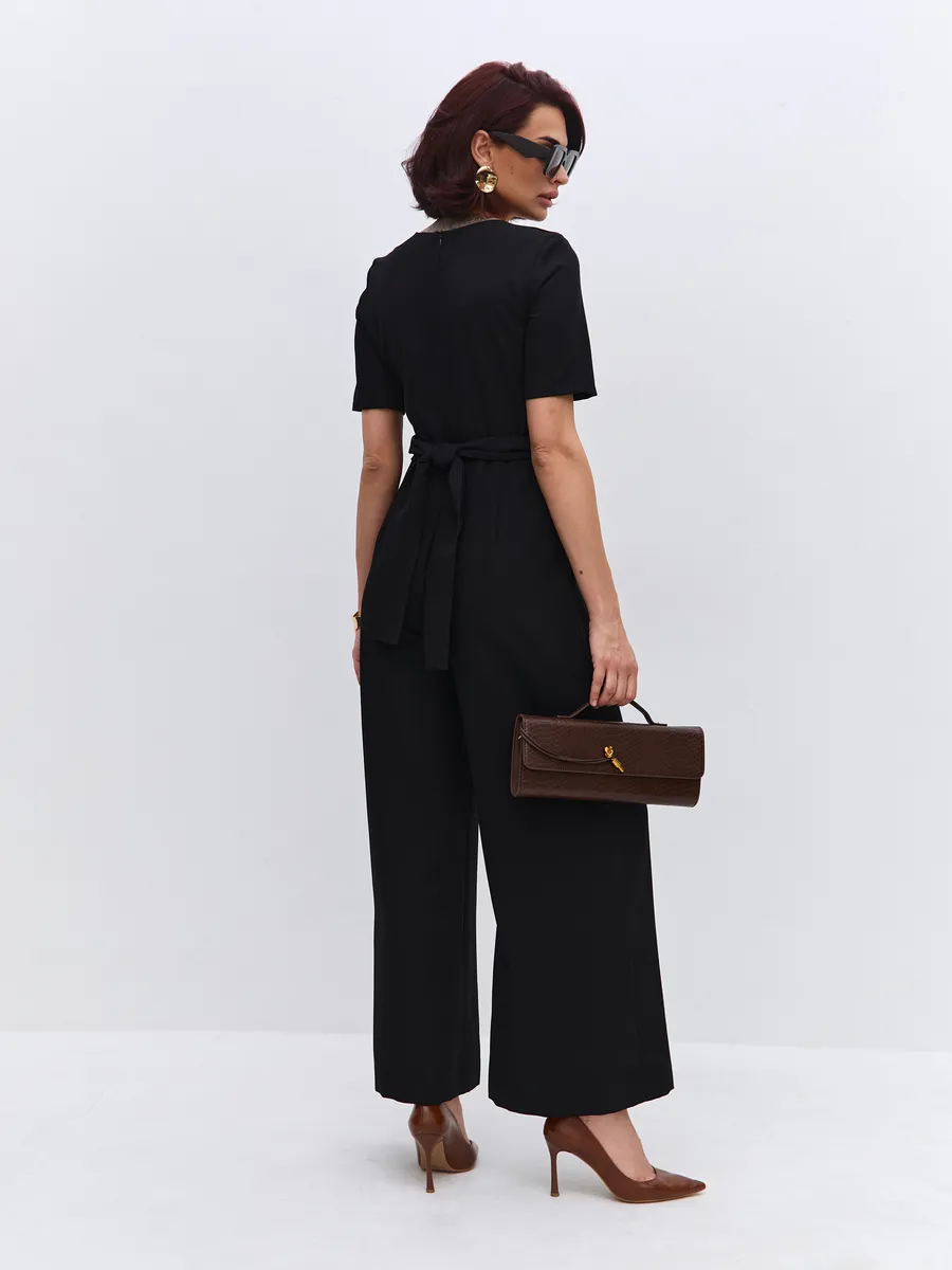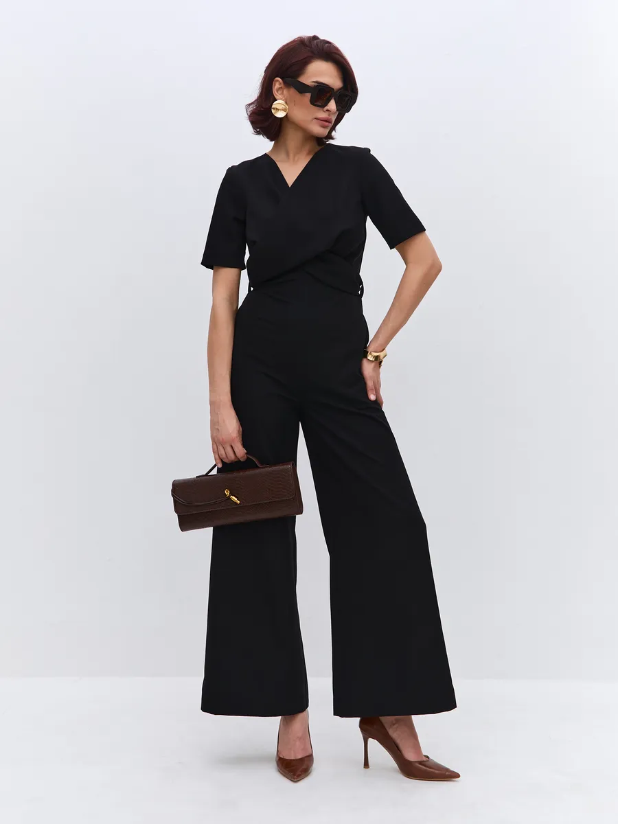 Комбинезон брючный осенний от NARCISSE & MOLOKO APPAREL – это стильное и комфортное решение для летних вечеров. Модель выполнена из плотной костюмной ткани Бостон с добавлением вискозы и лайкры, что обеспечивает приятные тактильные ощущения и свободу движений. Благодаря широким брюкам-палаццо комбинезон подчеркнет вашу фигуру и создаст элегантный силуэт. Модель украшена поясом с перекрутом, который добавляет образу изюминку. Комбинезон оснащен короткими рукавами, вшивными карманами и застегивается на молнию. Он идеально подойдет для выпускного, вечерних мероприятий или просто для создания стильного образа на каждый день.
