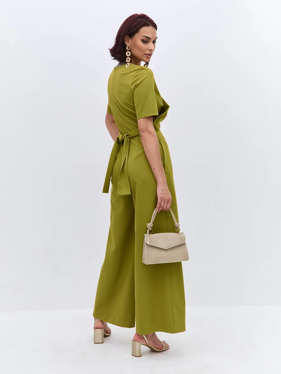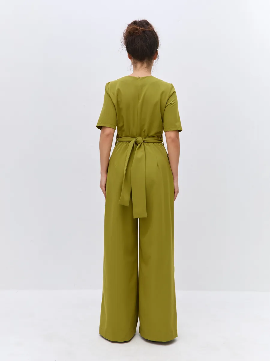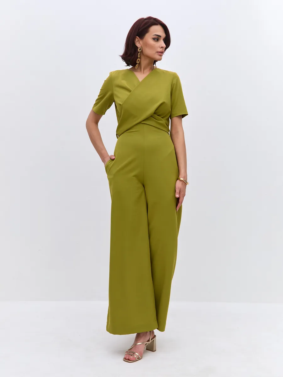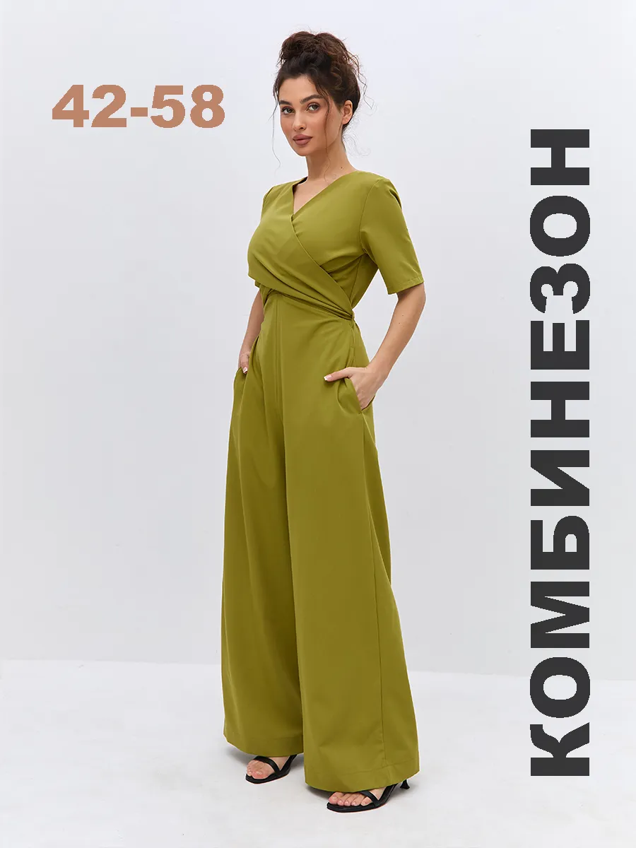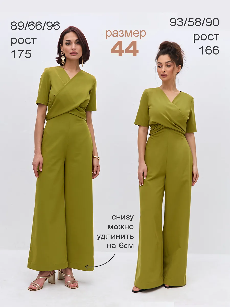 Трендовый зеленый цвет till green (тил грин) Комбинезон брючный осенний от NARCISSE & MOLOKO APPAREL – это стильное и комфортное решение для летних вечеров. Модель выполнена из плотной костюмной ткани Бостон с добавлением вискозы и лайкры, что обеспечивает приятные тактильные ощущения и свободу движений. Благодаря широким брюкам-палаццо комбинезон подчеркнет вашу фигуру и создаст элегантный силуэт. Модель украшена поясом с перекрутом, который добавляет образу изюминку. Комбинезон оснащен короткими рукавами, вшивными карманами и застегивается на молнию. Он идеально подойдет для выпускного, вечерних мероприятий или просто для создания стильного образа на каждый день.