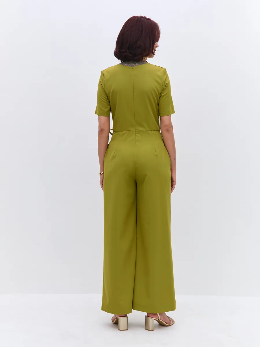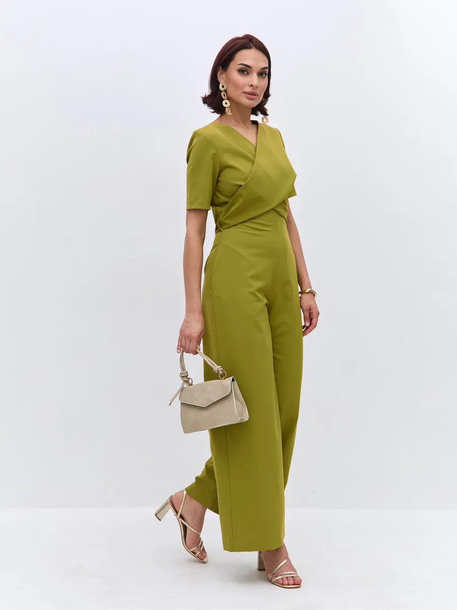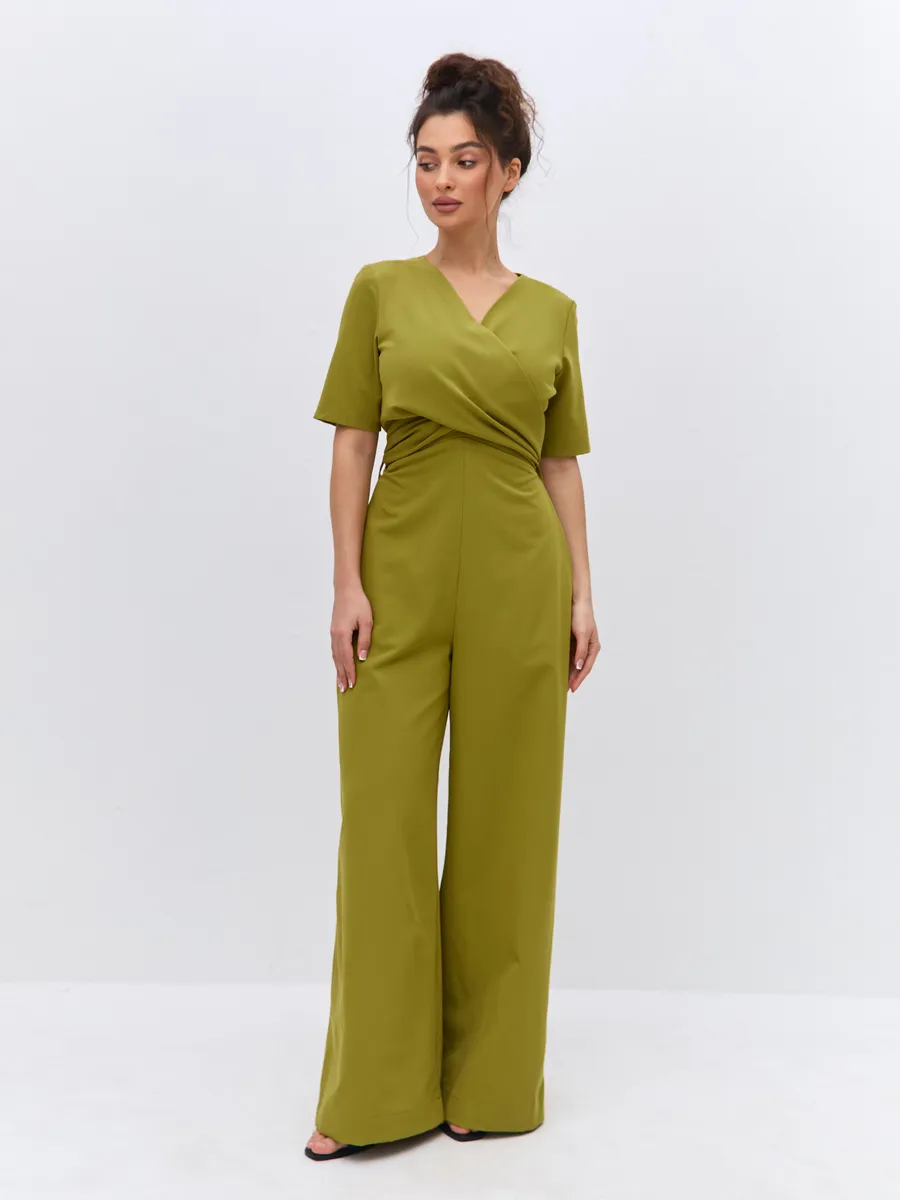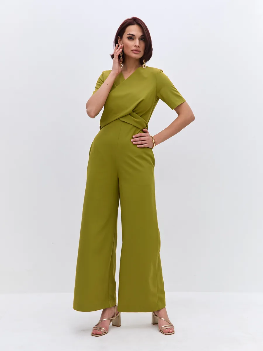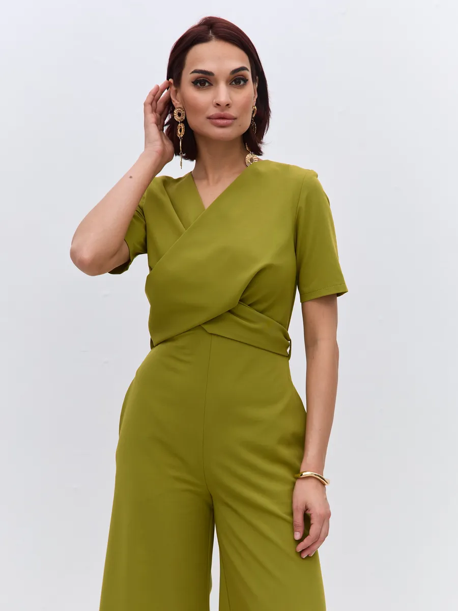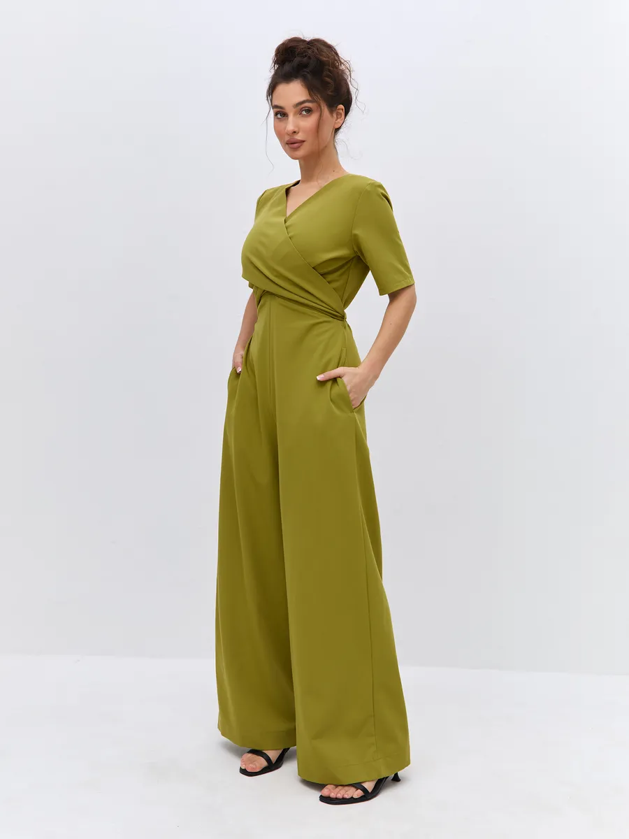 Трендовый зеленый цвет till green (тил грин) Комбинезон брючный осенний от NARCISSE & MOLOKO APPAREL – это стильное и комфортное решение для летних вечеров. Модель выполнена из плотной костюмной ткани Бостон с добавлением вискозы и лайкры, что обеспечивает приятные тактильные ощущения и свободу движений. Благодаря широким брюкам-палаццо комбинезон подчеркнет вашу фигуру и создаст элегантный силуэт. Модель украшена поясом с перекрутом, который добавляет образу изюминку. Комбинезон оснащен короткими рукавами, вшивными карманами и застегивается на молнию. Он идеально подойдет для выпускного, вечерних мероприятий или просто для создания стильного образа на каждый день.