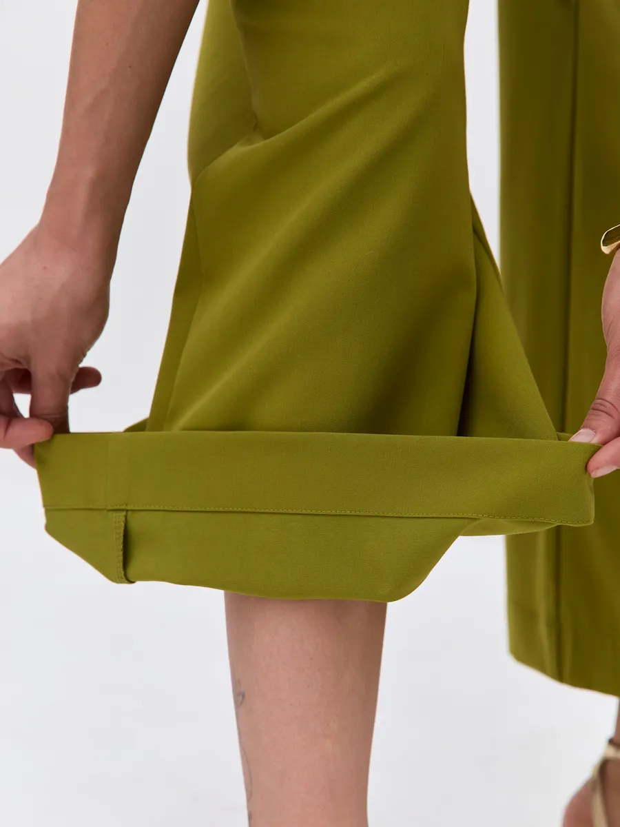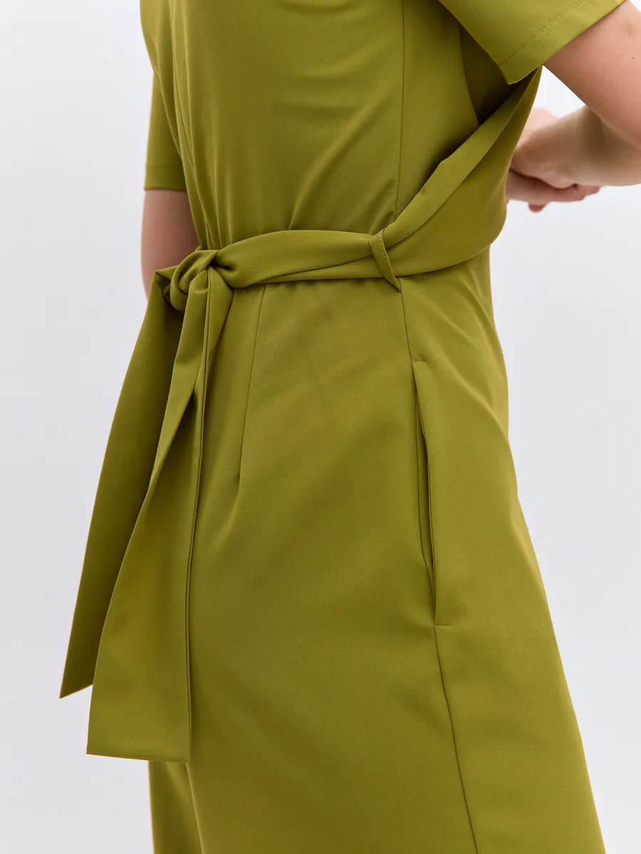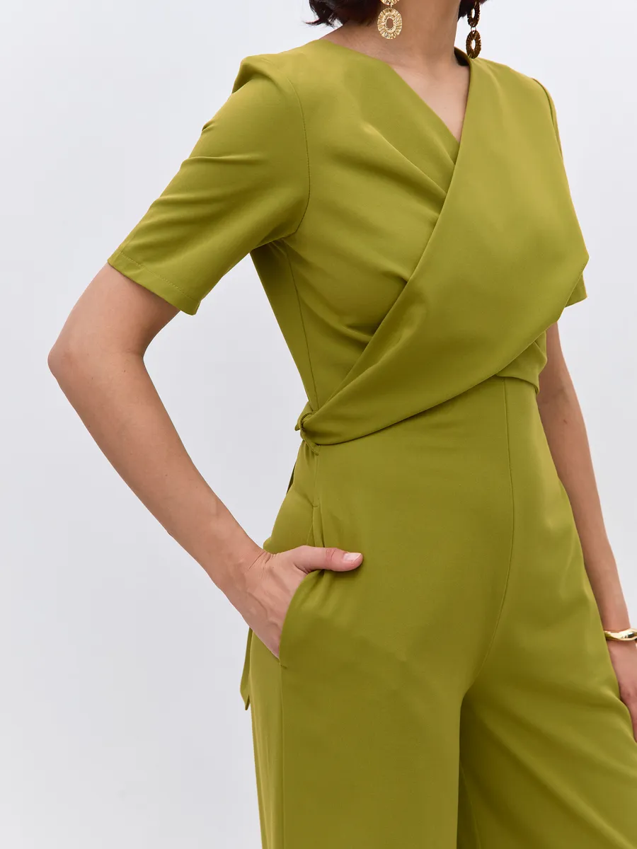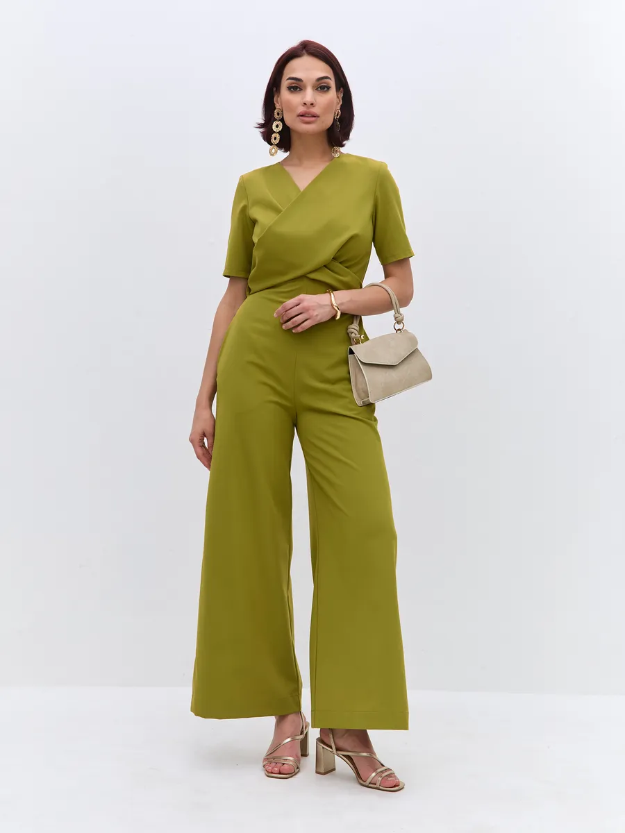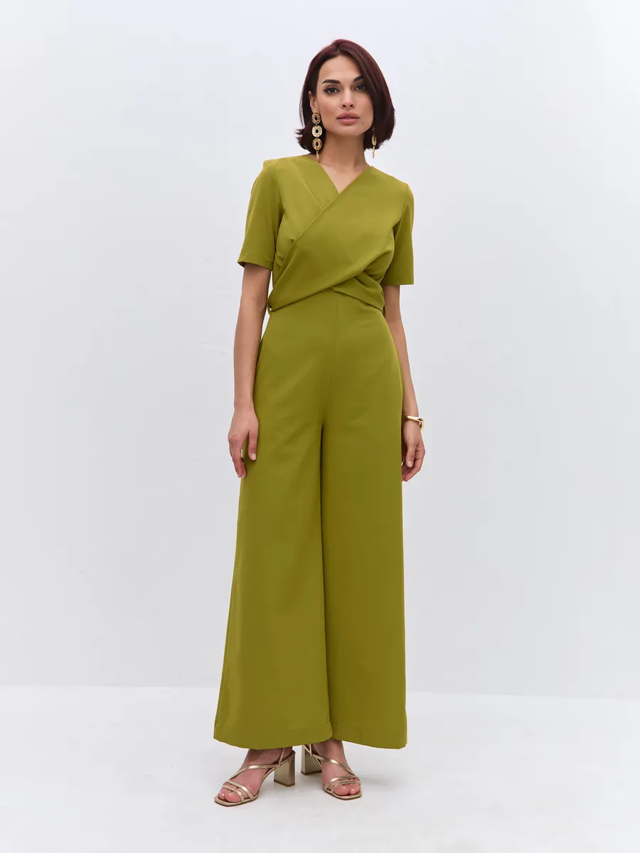 Трендовый зеленый цвет till green (тил грин) Комбинезон брючный осенний от NARCISSE & MOLOKO APPAREL – это стильное и комфортное решение для летних вечеров. Модель выполнена из плотной костюмной ткани Бостон с добавлением вискозы и лайкры, что обеспечивает приятные тактильные ощущения и свободу движений. Благодаря широким брюкам-палаццо комбинезон подчеркнет вашу фигуру и создаст элегантный силуэт. Модель украшена поясом с перекрутом, который добавляет образу изюминку. Комбинезон оснащен короткими рукавами, вшивными карманами и застегивается на молнию. Он идеально подойдет для выпускного, вечерних мероприятий или просто для создания стильного образа на каждый день.