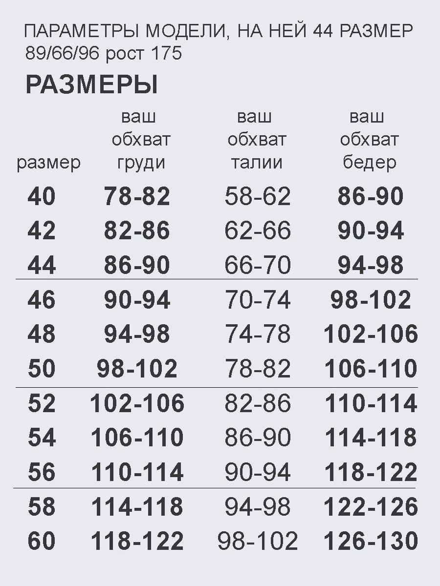 Параметры модели на фото (ОГ-ОТ-ОБ)