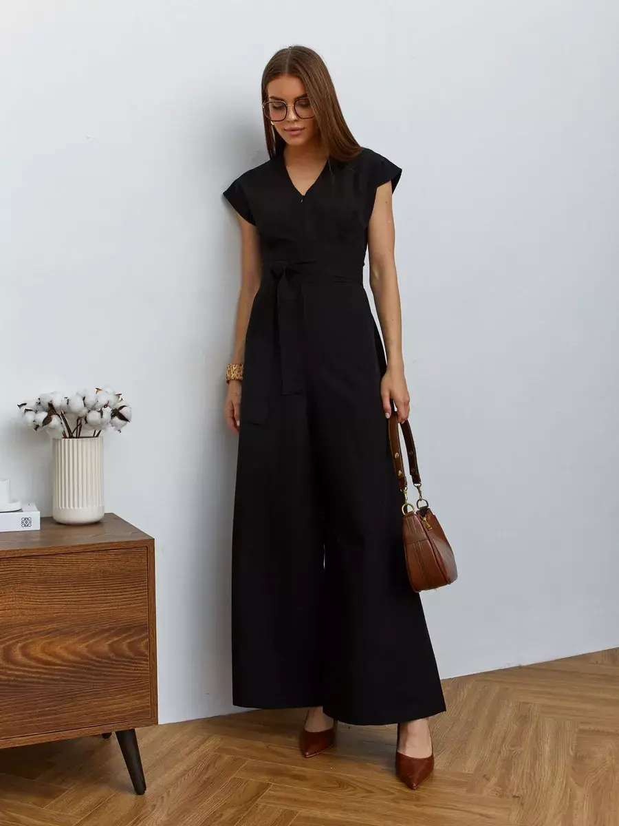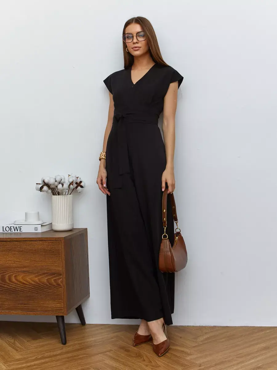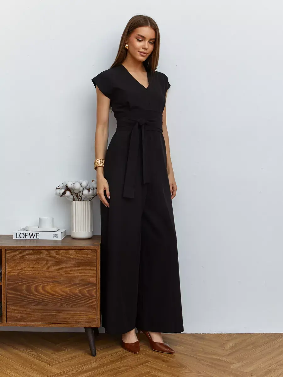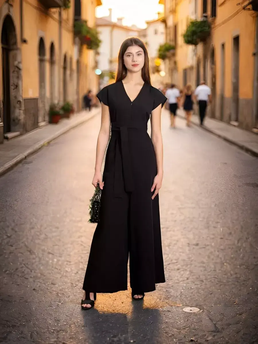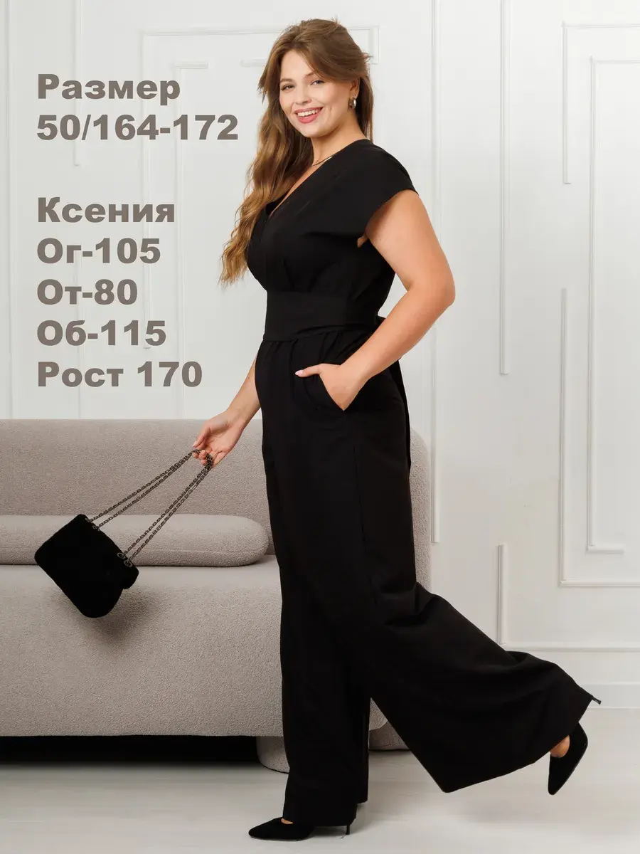 Элегантный комбинезон женский вечерний - трендовый вариант одежды, идеально подходящий для тех, кто предпочитает изысканный классический стиль. Наряд выполнен из износостойкого и качественного костюмного материала Бостон. Комбинезон классический поможет создать образ на любой случай: строгий офисный на работу, праздничный на торжество или осенний повседневный. Этот стильный и нарядный комплект с прямыми брюками палаццо и поясом на талии - замечательный выбор для каждой женщины. Его можно надеть в театр, на фотосессию, свадьбу или любой другой праздник. Модный комбез демисезонный со штанами палаццо отлично подойдёт для высоких, и на невысоких. Неважно - весна, лето или осень, эта женственная одежда в стиле классик подчеркнет утонченный вкус и индивидуальность, что понравится каждой современной девушке!