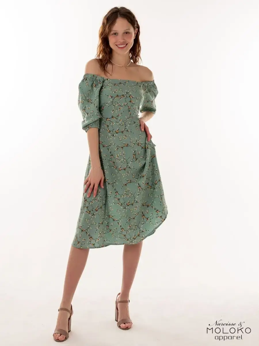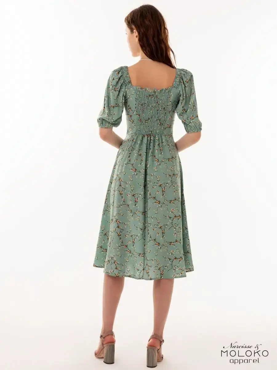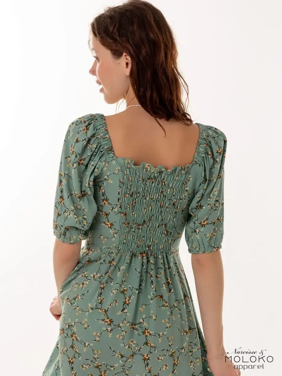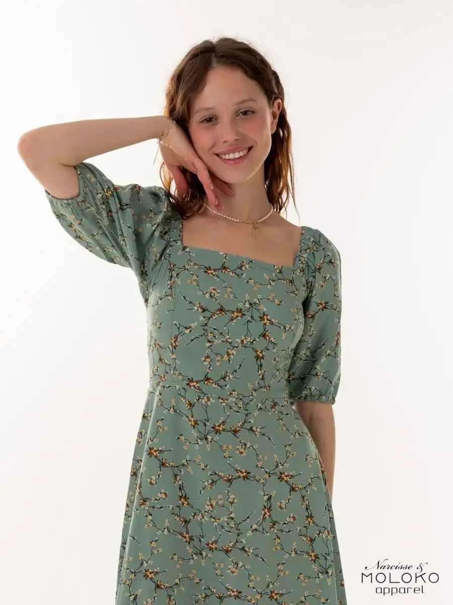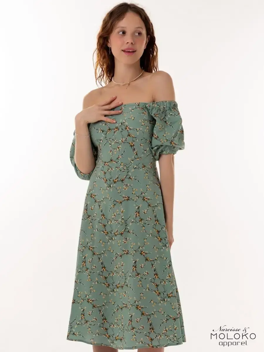 Легкое, свободное и красивое платье крестьянка с цветочным принтом станет прекрасным выбором одежды на весенний или летний сезон. Сарафан сшит из вискозы, которая хорошо впитывает влагу и дышит, что особенное актуально для жаркого времени года. Платье-сарафан с объемными рукавами фонариками и квадратным вырезом имеет приталенный А - силуэт. Милое зеленое платье миди с цветами поможет создать стильные, нежные праздничные и пляжные образы. Наряд с голыми плечами отлично подчеркнет фигуру и идеально подойдет для фотосессии. Платье-крестьянка ниже колен - яркий и комфортный повседневный образ для девушек и женщин на лето. Вещи, сочетающие в себе стиль и комфорт, — лучшее дополнение в гардероб!