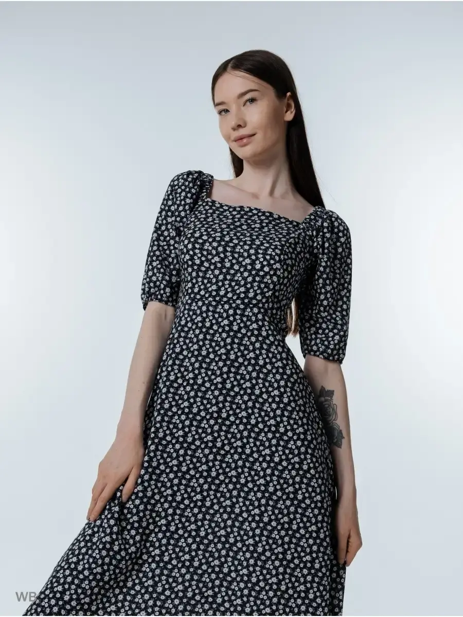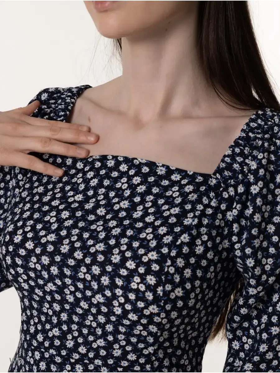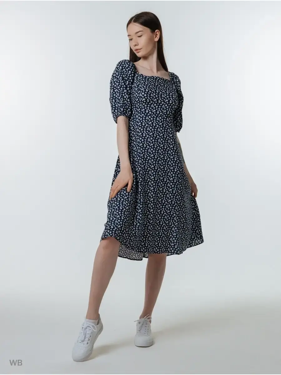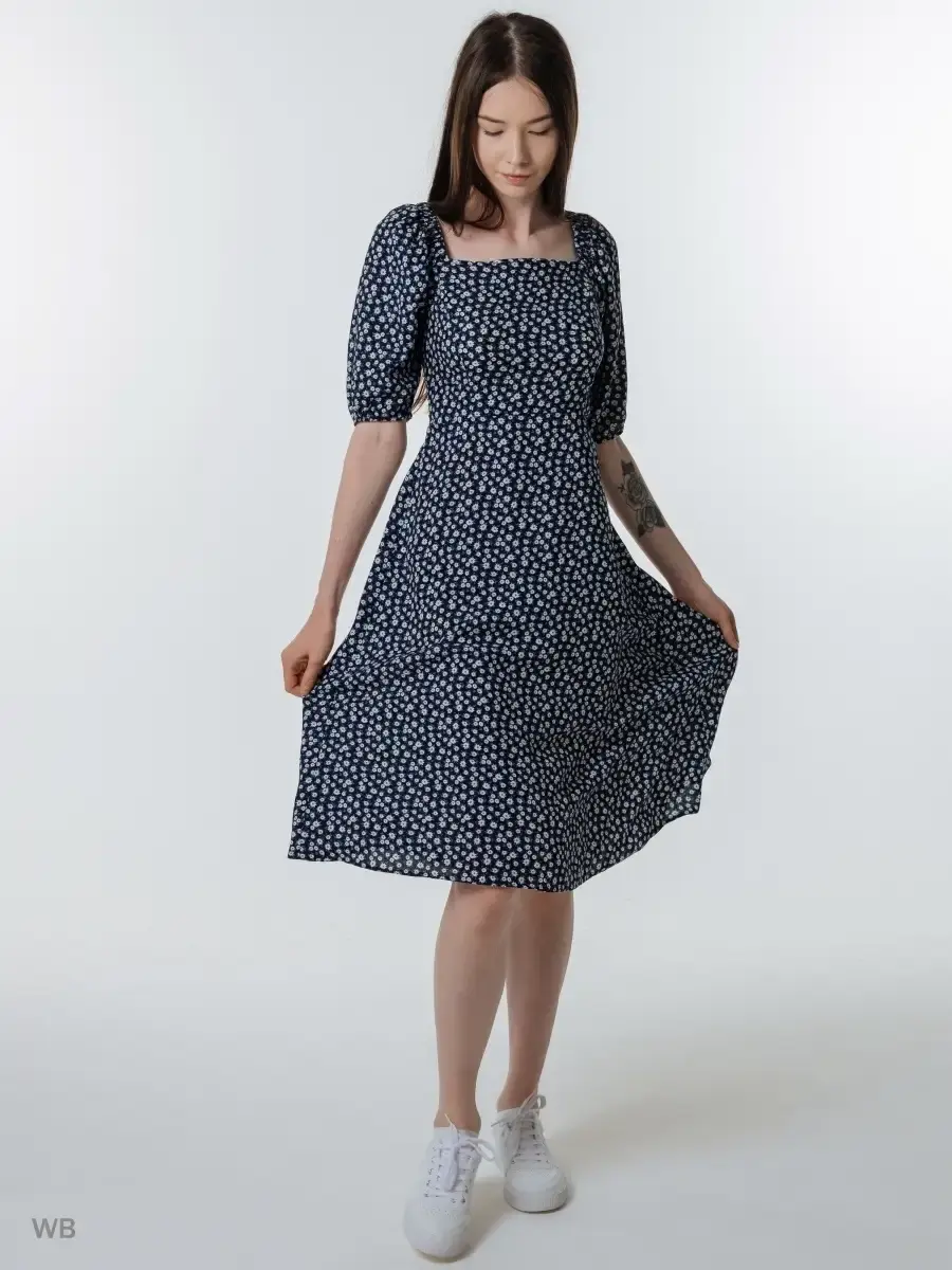 Легкое, свободное и красивое платье крестьянка с цветочным принтом станет прекрасным выбором одежды на весенний или летний сезон. Сарафан сшит из вискозы, которая хорошо впитывает влагу и дышит, что особенное актуально для жаркого времени года. Платье-сарафан с объемными рукавами фонариками и квадратным вырезом имеет приталенный А - силуэт. Милое темно-синие платье миди с цветами поможет создать стильные, нежные праздничные и пляжные образы. Наряд с голыми плечами отлично подчеркнет фигуру и идеально подойдет для фотосессии. Платье-крестьянка ниже колен - яркий и комфортный повседневный образ для девушек и женщин на лето. Вещи, сочетающие в себе стиль и комфорт, — лучшее дополнение в гардероб!
