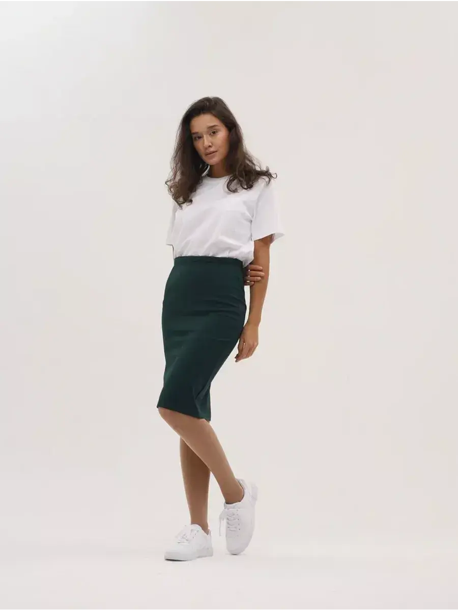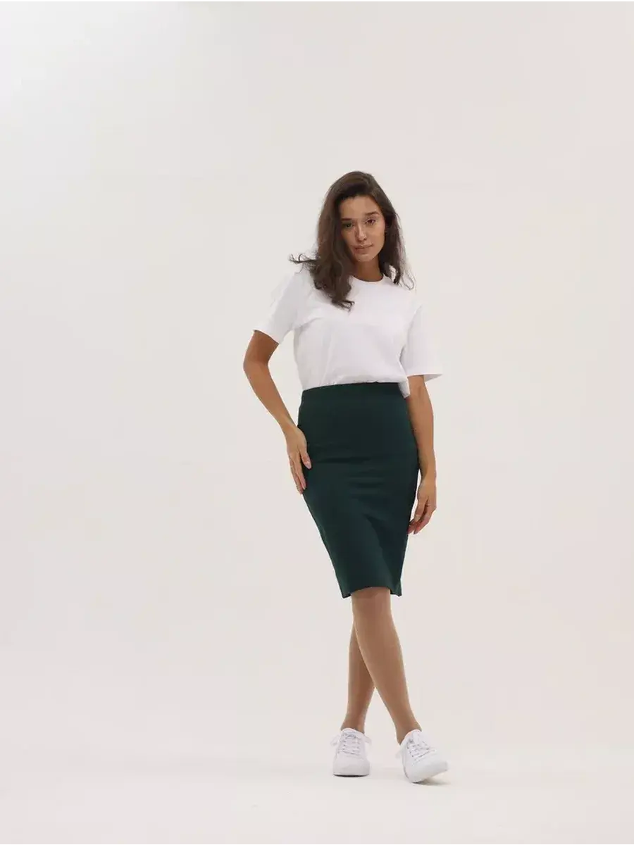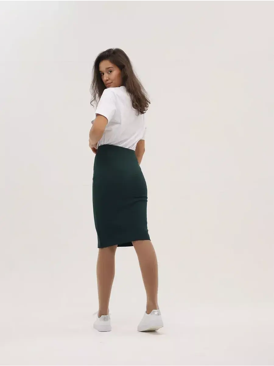 Юбка длиной 57 см была разработана как удобная одежда для беременности. Юбка женская офисная Вам понадобится как для работы так и для повседневной носки. Данная модель отличный теплый вариант. Стильная она сшита из плотного джерси с высоким содержанием вискозы. Благодаря этому она поддерживает живот, не просвечивает, не оставляет зацепок. Материал не создает катышек, с высокой талией специально сшита на резинке, чтобы регулировать ширину по животу. И не забудьте о выборе правильного размера и длины, чтобы она идеально подходила Вашим изменяющимся формам тела. После родов рекомендуется кормящим мамочкам носить ее на естественном месте.