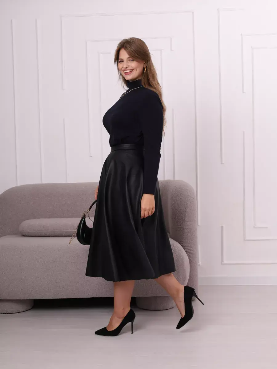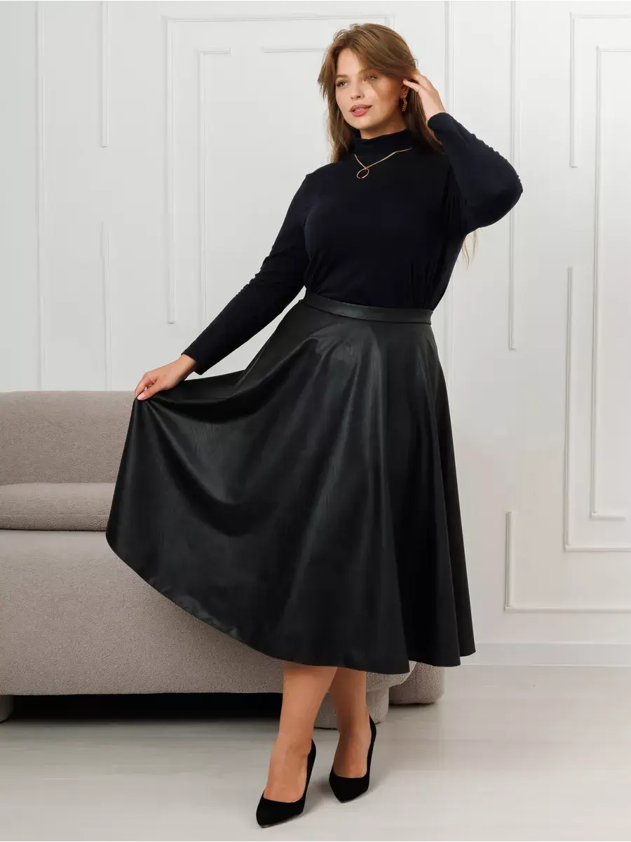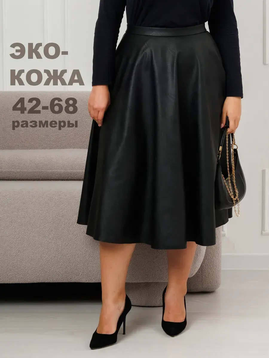 Расклешенная юбка солнце женская из эко-кожи - стильный и универсальный элемент гардероба. Она прекрасно подойдет как для повседневной или офисной носки, так и для торжеств. Вещи с А силуэтом, высокой посадкой и ниже колена - замечательный вариант для любой фигуры. Кожаная юбочка миди длинная полусолнце в складку, с воланами отлично подойдет для высоких и невысоких, для полных и худых, размерный ряд от маленьких до больших размеров. В наличии имеется большой размер plus size (плюс сайз). Юбка макси в пол винтаж летняя вечерняя поможет создать эстетичные, деловые и нарядные праздничные образы. Модный наряд для женщин с завышенной талией можно надеть на корпоратив, вечеринку или праздник, в школу или офис. Она удлиненная, средней длины и идеальна для тех, кто не хочет носить слишком длинное. Красивая базовая одежда в стиле классик понравится каждой девушке на зиму, осень, весну и лето!