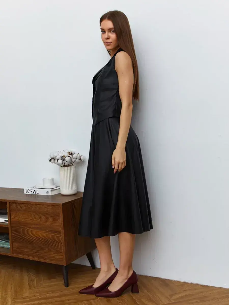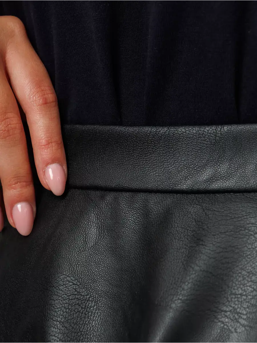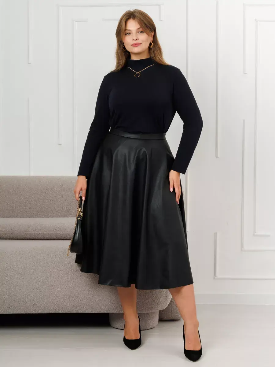 Расклешенная юбка солнце женская из эко-кожи - стильный и универсальный элемент гардероба. Она прекрасно подойдет как для повседневной или офисной носки, так и для торжеств. Вещи с А силуэтом, высокой посадкой и ниже колена - замечательный вариант для любой фигуры. Кожаная юбочка миди длинная полусолнце в складку, с воланами отлично подойдет для высоких и невысоких, для полных и худых, размерный ряд от маленьких до больших размеров. В наличии имеется большой размер plus size (плюс сайз). Юбка макси в пол винтаж летняя вечерняя поможет создать эстетичные, деловые и нарядные праздничные образы. Модный наряд для женщин с завышенной талией можно надеть на корпоратив, вечеринку или праздник, в школу или офис. Она удлиненная, средней длины и идеальна для тех, кто не хочет носить слишком длинное. Красивая базовая одежда в стиле классик понравится каждой девушке на зиму, осень, весну и лето!